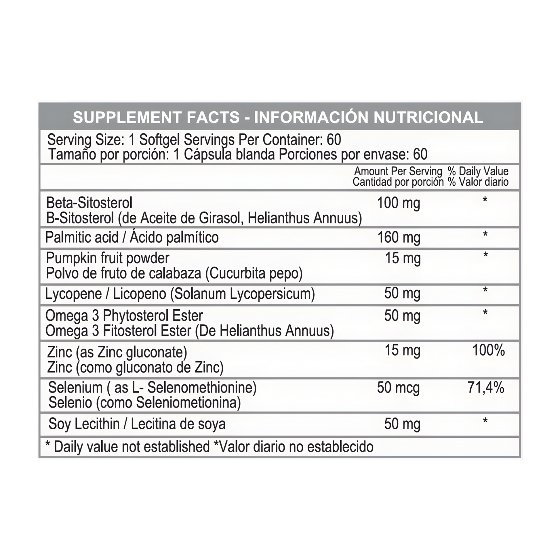 PSA es un suplemento dietario formulado para apoyar el bienestar de la próstata y la función urinaria en el hombre adulto. Combina fitosteroles, extractos vegetales, antioxidantes y minerales clave para el cuidado integral de la salud prostática dentro de un estilo de vida saludable.